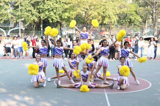 比赛中的球员们积极主动勇于拼搏,为大家呈现了精彩绝伦的篮球盛宴。中场休息时我们的拉拉操队也不甘示弱,我院啦啦操队以整齐的步伐、有力的动作、饱满的精神紧紧吸引了现场观众的眼球,高难度的动作引起了观众们的惊呼,新传姑娘们活力四射的舞姿、动感的青春舞步成为本次比赛过程中一道靓丽的风景线。
