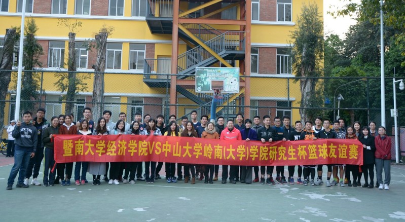 12月16日(周六)下午,首届暨南大学经济学院与中山大学岭南(大学)学院研究生杯篮球友谊赛于在我校篮球场举办。该活动由经济学院研究生会和中山大学岭南(大学)学院研究生会主办,由暨南大学经济学院2009届毕业研究生于泓赞助,通过篮球加强两院研究生之间的交流。