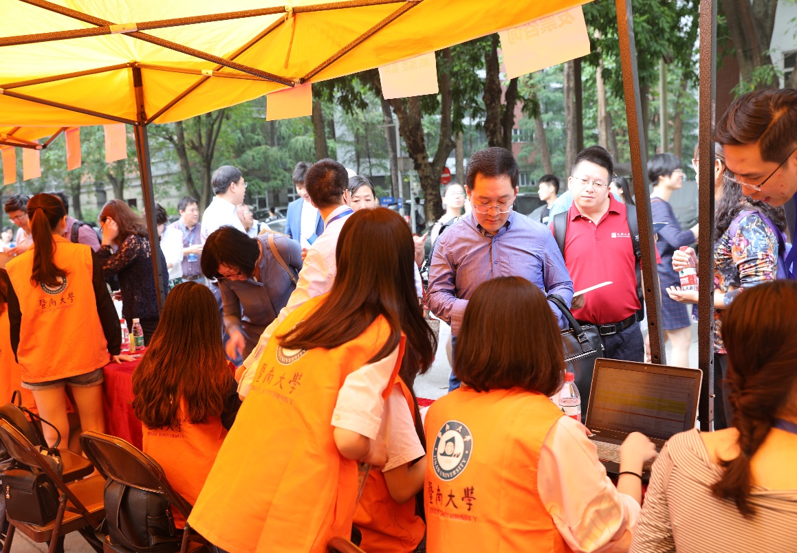 本届会议得到了全国营销学者的积极响应,会议规模空前,与会人数超过千人,收到论文稿件共420余篇,录用论文300余篇,无论是参会人数还是论文投稿数量均为历届年会之最。为了做好本次学术会议的接待工作,管理学院研究生会积极参与到了会议的筹办和接待工作。本次会议的志愿者共分为五个组,即接待组,会场组,设备组,茶歇组,注册组。在这五个组内,均可见到管理学院研究生会成员辛勤服务的身影。其中注册组的工作任务非常繁重,工作内容包括:与会人员的注册,与会资料和会议发票的发放,人员和发票需要一一对应等。这些对于志愿者们来说是不小的挑战,但志愿者们却以主人翁的精神应对,最终保证注册工作有条不紊地进行。作为本次活动的志愿者,同时也是管理学院研究生会干事之一的陶乐说道:“我非常荣幸可以担任本次会议的志愿者,能够有机会代表暨南大学,代表管理学院,代表管理学院研究生会去热情地接迎每位远道而来的客人”。