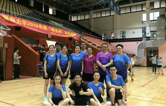 2018年5月5日,暨南大学2018年度“师生杯”羽毛球赛拉开帷幕,我院羽毛球队员星亮、龙思思、林爱珺等老师,以及蔡鮀森、史谅、庞宇瑶、肖凌之等研究生同学以饱满的热情投入到此次比赛中。