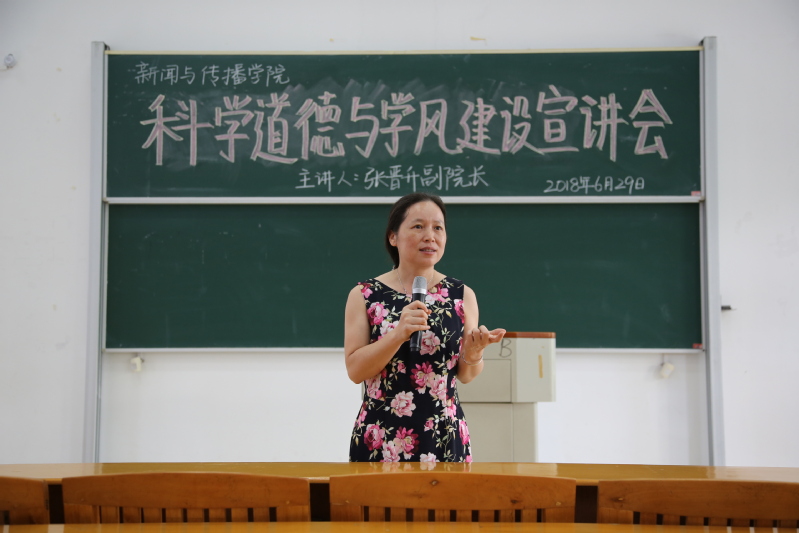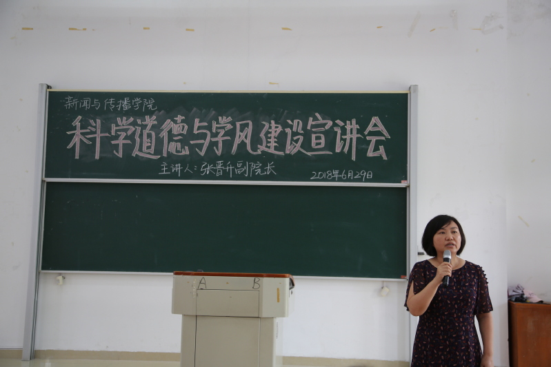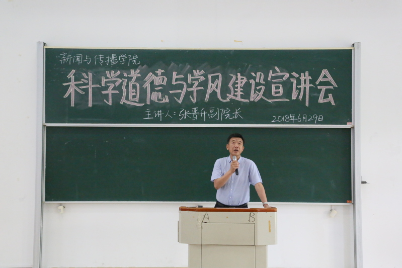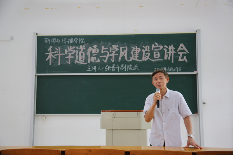 2018年6月29日上午,新闻与传播学院在教学楼A209教室召开科学道德与学风建设宣讲会。学院全日制研究生、同等学力研究生及部分研究生导师参加,本次宣讲会由学院副院长张晋升教授主讲。