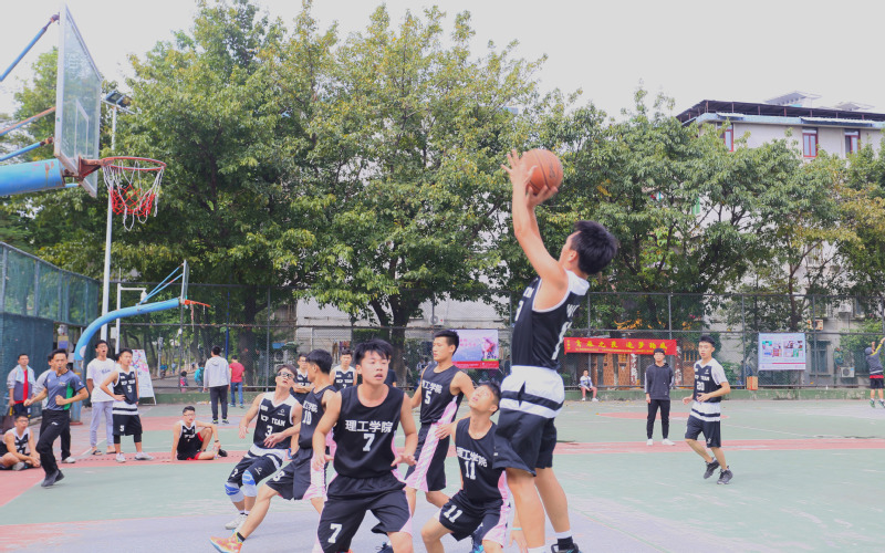 近日的广州终于有了些许凉意,秋高气爽,暖暖的阳光照在人身上懒洋洋的,但球场上的球员们却个个斗志昂扬、战意正浓,因为他们这场要面对的是一支实力很强的理工学院男篮球队,每个人都打起12分的精神。裁判一声哨响,比赛正式开始,前期双方都组织了严密的防守,各有来回,比分卡在4:4。然而在第一节的最后几分钟风起云涌,我方13号球员以一个两分球率先打破了平衡,紧随其后4号球员再添一球,扩大优势、乘胜追击将第一节的比分定格在8:4,为我方的胜利奠定了坚实基础。